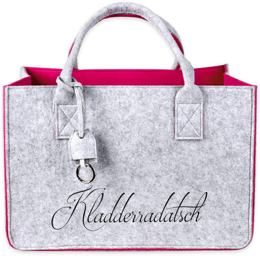 Filztasche Einkauftasche Kladderradatsch Motiv in Magenta und Mint